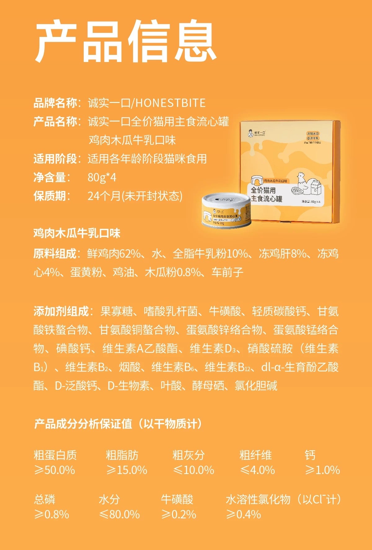 Guaranteed Analysis: Crude protein ≥50.0%, Crude fat ≥15.0%, Coarse ash <10.0%, Crude fiber <4.0%, Calcium ≥1.0%, Total phosphorus ≥0.8%, Moisture <80.0%, Taurine ≥0.2%, Water-soluble chlorides (as Cl-) ≥0.4%