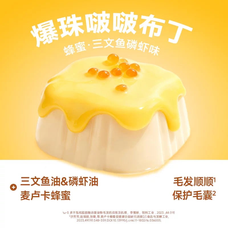 Ingredients: Frozen pigeon meat 43%, frozen chicken breast 37%, whole goat milk (from New Zealand, lactose-free) 5%, honey (New Zealand Manuka honey) 3%, chicken fat, egg white powder, egg yolk powder, blueberry powder 0.5%, acai berry powder 0.5%, flaxseed powder